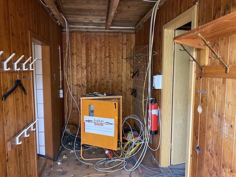 Inzwischen sind u.a. mit weiterhin viel Eigenleistung die alte Elektroverkabelungen entfernt worden. Ebenfalls die alte Heizung und WC-Anlagen.