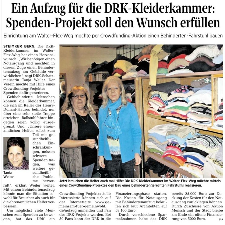 Am 06.05.2017 hat die Wolfsburger Allgemeine Zeitung über unser Projekt berichtet. Leider mit einem alten Foto von unserer Kleiderkammer.