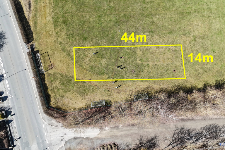 Letzte Woche haben wir die Felder auf dem PTSV Gelände abgesteckt. Hier eine Drohnenaufnahme aus luftiger Höhe.