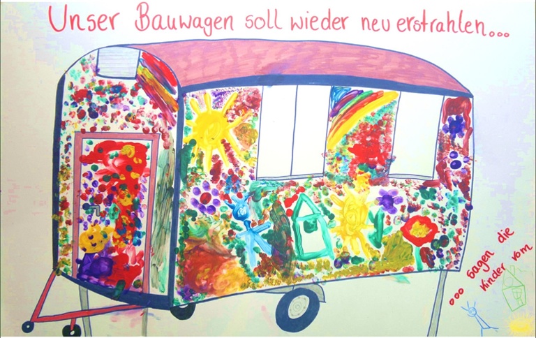 Der neu gestaltete Bauwagen, wie ihn sich die Kinder vom Kinderhaus Sonnenschein vorstellen