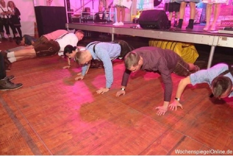 In der aufgeheizen und von Adrenalin vollgepumten Halle gaben die Teilnehmer bei dieser Gaudi Aktion alles, um für ihren Tisch je ein Maas Bier zu sichern.