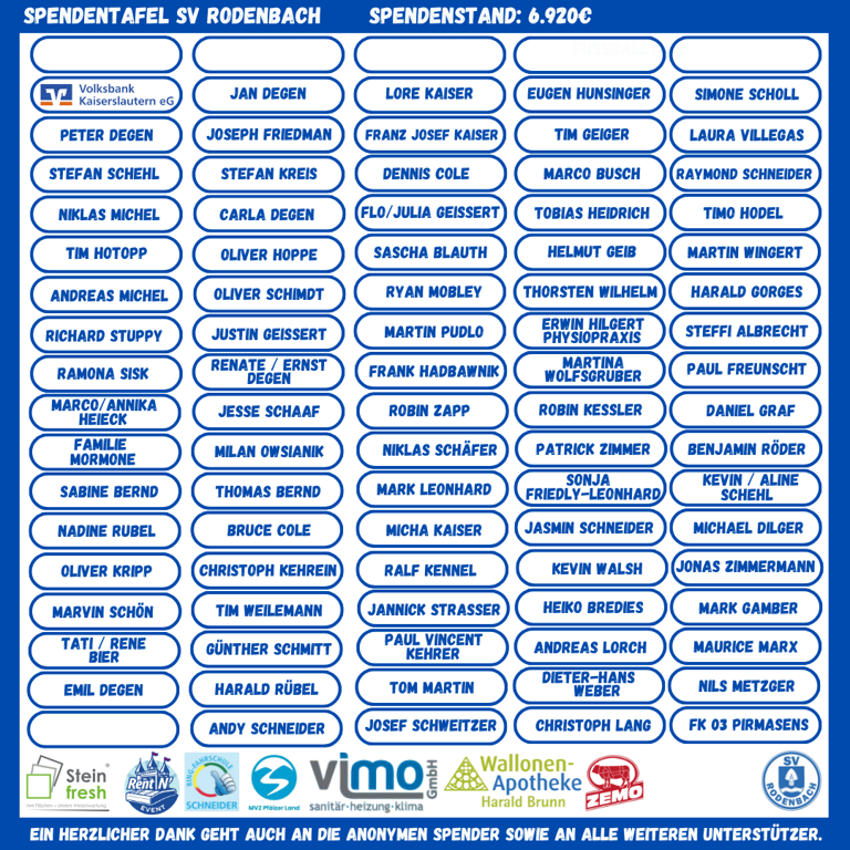 Der SV Rodenbach ist als Verein überglücklich, denn damit konnten unsere neuen Tore vollständig beglichen werden.