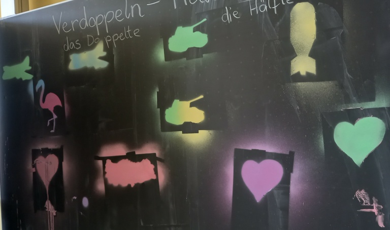 Wir haben Schablonen hergestellt und mit Kreidespray ausprobiert.