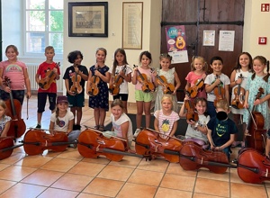 entdecken gemeinsam die Streichinstrumente. Unterstützt werden die