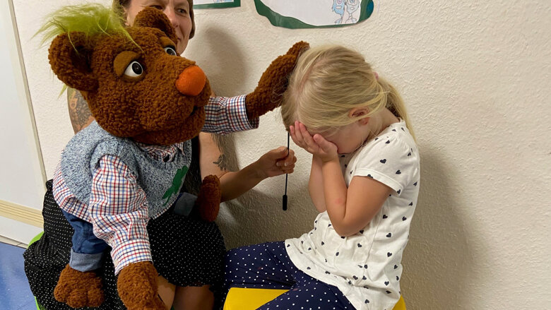 Wir begleiten trauernde und durch den Tod eines nahen Angehörigen traumatisierte Kinder und Jugendliche. Um mit noch sehr jungen Kindern ins Gespräch zu kommen und ihre aktuelle Gefühlswelt zu verstehen, arbeiten wir erfolgreich mit großen Handpuppen, die eigens nach unseren Vorstellungen hergestellt werden. Nun braucht unser Bär, der inzwischen viele kleine Freunde hat, noch einen Kumpel oder/und eine Freundin.