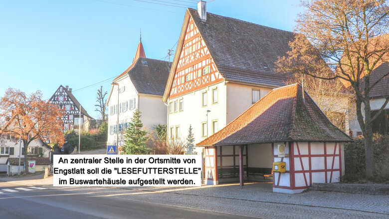 In Engstlatt soll an zentraler Stelle in der Ortsmitte ein öffentlicher Bücherschrank aufgestellt werden. Die „LESEFUTTERSTELLE ENGSTLATT“ kommt allen Einwohnern von Engstlatt zugute. Ein Ort des Miteinanders, der Nachhaltigkeit und der Kultur!