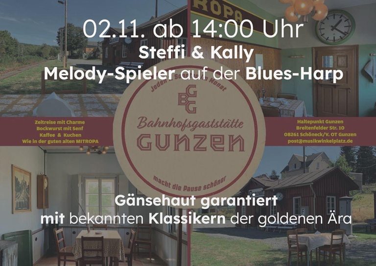 Herzliche Einladung zum offenen Bahnhof am Sonntag, dem 2. November 2025, Haltepunkt Gunzen, ab 14 Uhr. Diesmal mit Musik... Kommt gerne vorbei!