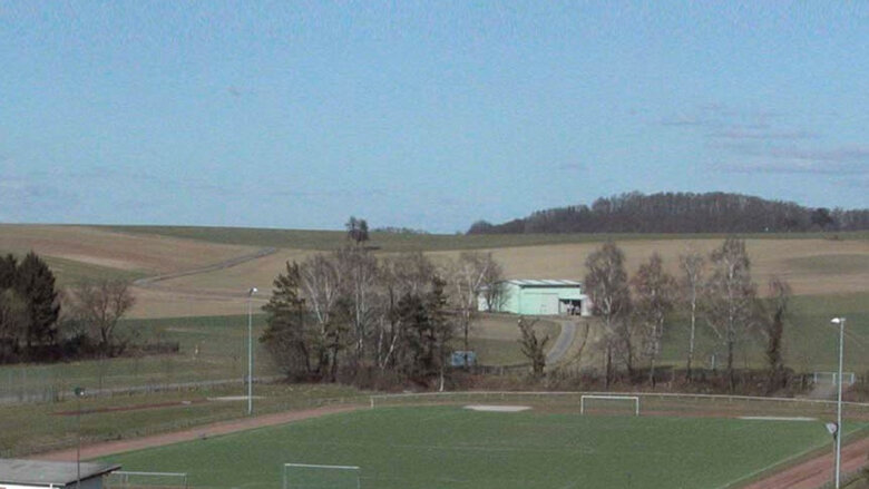 Neue Fußballtore und Ballfangzäune für das Hauptfeld im Stadion in der Aue