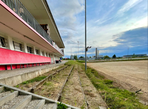 Die alte Tribüne des VfR 07 Limburg soll im Rahmen des Kunstrasenbaus erneuert werden.