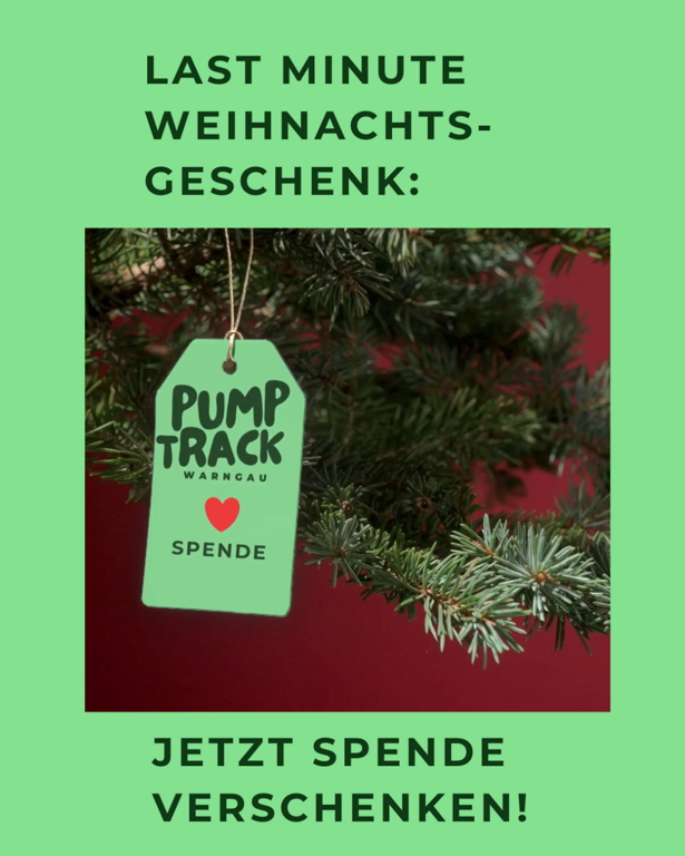 Wenn du bis zum 22.12. spendest und in Warngau +10 km Umkreis wohnst, bringen wir dir ein liebevoll verpacktes Spendenzertifikat - perfekt für's Untern-Baum-Legen - bis 24.12. 12 Uhr vorbei. Hierfür bitte eine Email mit Adresse an pumptrack.warngau@gmail.com senden.