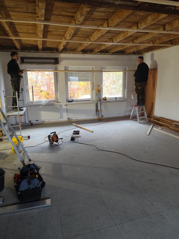 - die alte Lattung an der Decke entfernt und eine neue Lattung gesetzt