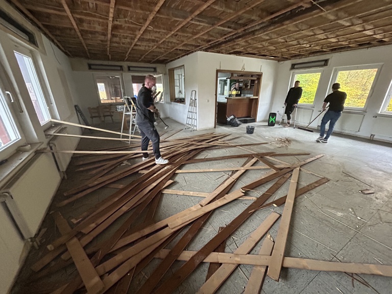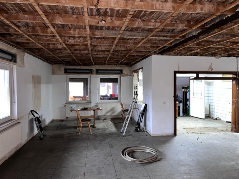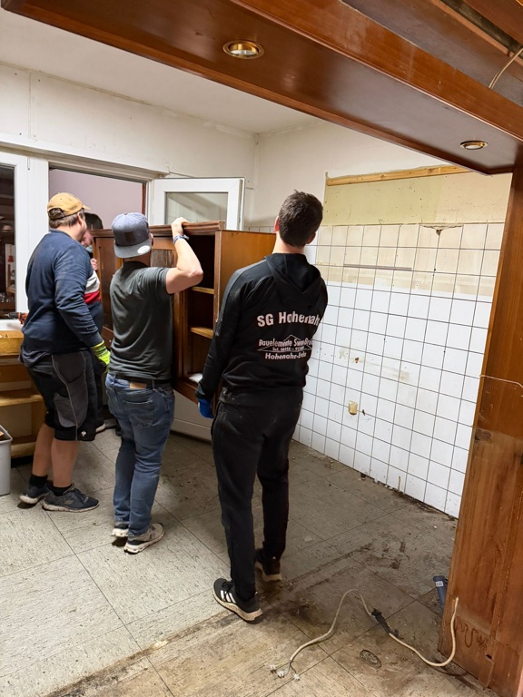 Dann haben wir uns in verschiedene Teams eingeteilt. Es wurde der Speicher aufgeräumt, die Decke abgerissen, die Theke abgebaut sowie weitere kleinere Tätigkeiten vorgenommen.