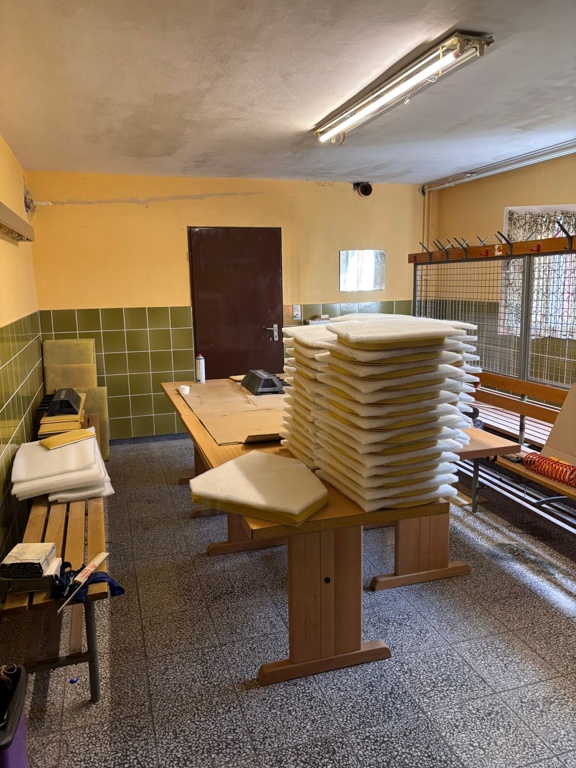 Die neue Bepolsterung der Stühle nimmt auch weiter Fahrt auf.