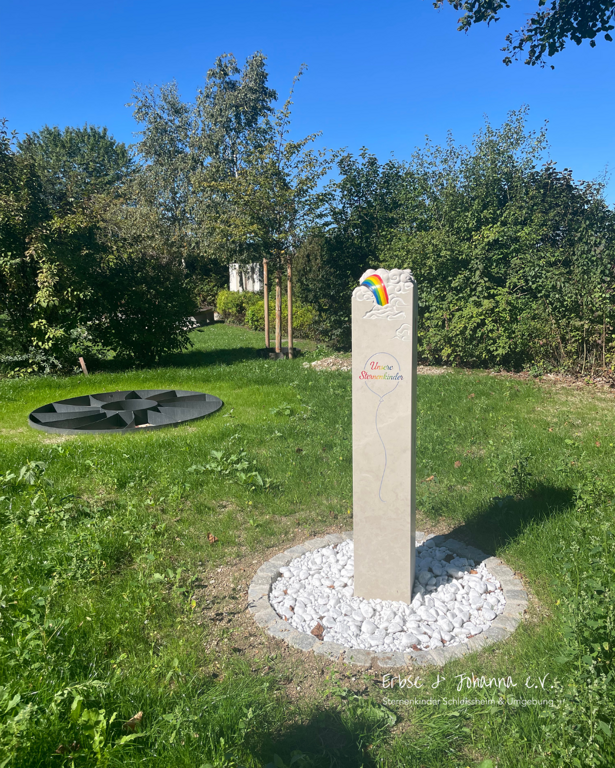 Die baulichen Maßnahmen an der Grabfläche sind nahezu abgeschlossen. Es fehlen nur noch ein Heckenzuschnitt, weitere Bepflanzungen und das Mähen bzw. Säen des Rasens.