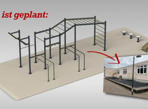Wir planen einen Parcours für Kletteraffen und Fitness-Fans mitten auf unserem Schulhof - da ist für alle was dabei!