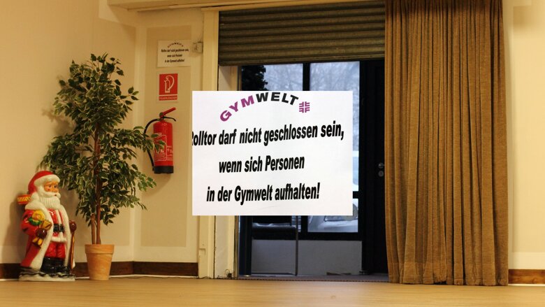 Der TUS Belecke möchte in der Gymwelt das Rolltor aus Metall gegen eine isolierverglaste Fluchttür austauschen. Das Rolltor muss als Fluchtweg während der Nutzung geöffnet bleiben.