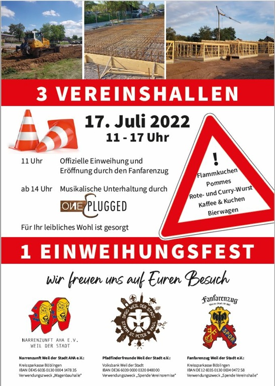 Am Sonntag 17. Juli von 11-17 Uhr werden wir mit einem großen Einweihungsfest die Hallen offiziell einweihen. Dort können dann auch die Dankeschön-Pins abgeholt werden.