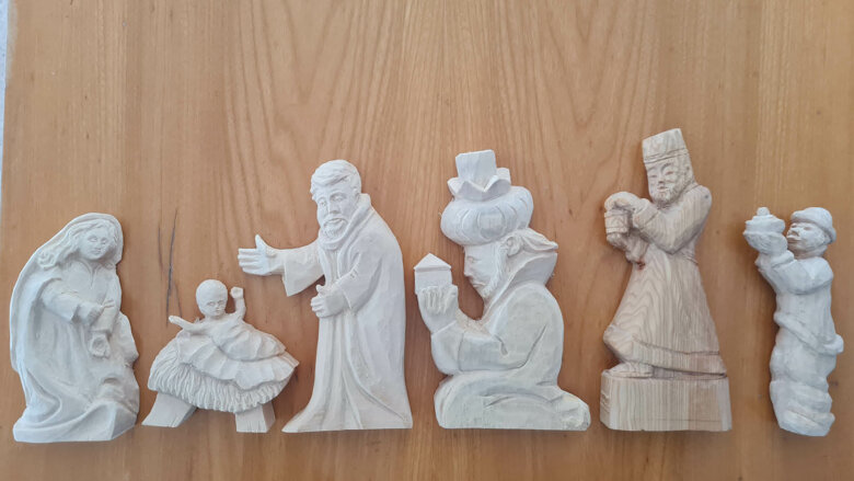 Erschaffung einer neuen Weihnachtskrippe (die alte Krippe stand von 2007-2015) mit geschnitzten lebensgroßen Figuren für die Traditionspflege in der Adventszeit im Folklorehof Grüna, dem kulturellen Zentrum des Ortes.