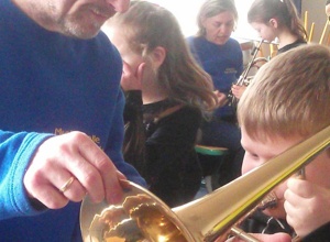 Die Vorstellung der Blasinstrumente übernimmt zum Teil die Musikkapelle (siehe Fotos).